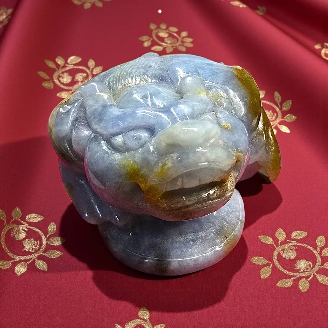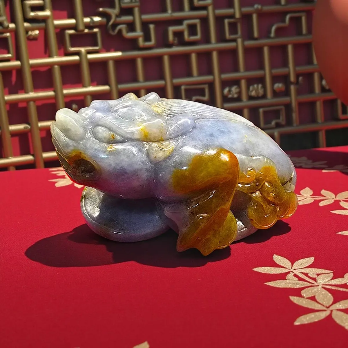 這尊貔貅是本批原礦中唯一出現這種色階的特殊色。